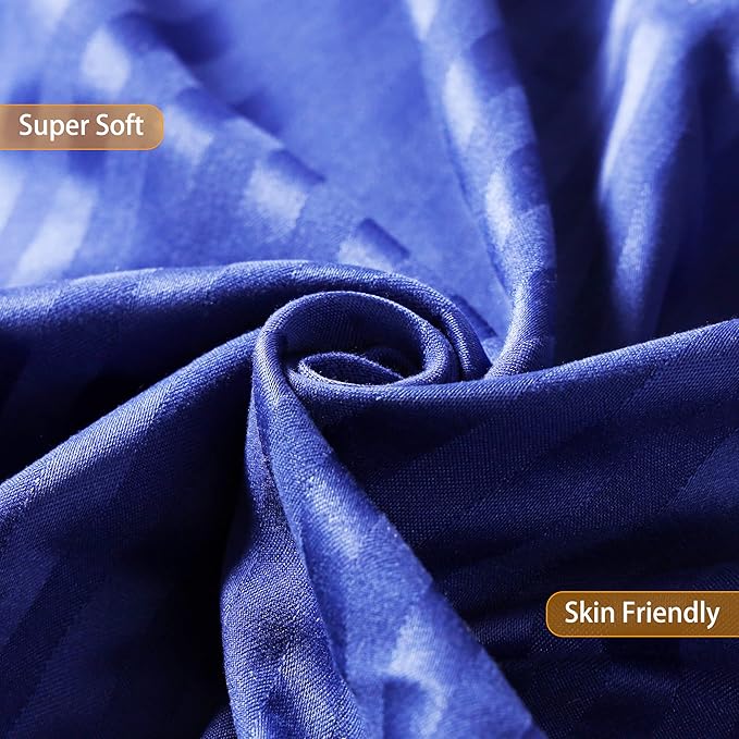 Toddler Bedding Set - 4 Piece Soft Crib Bedding Set for Boys, Includes Toddler Comforter, Flat Sheet, Fitted Sheet and Pillowcase, Blue Stripe
