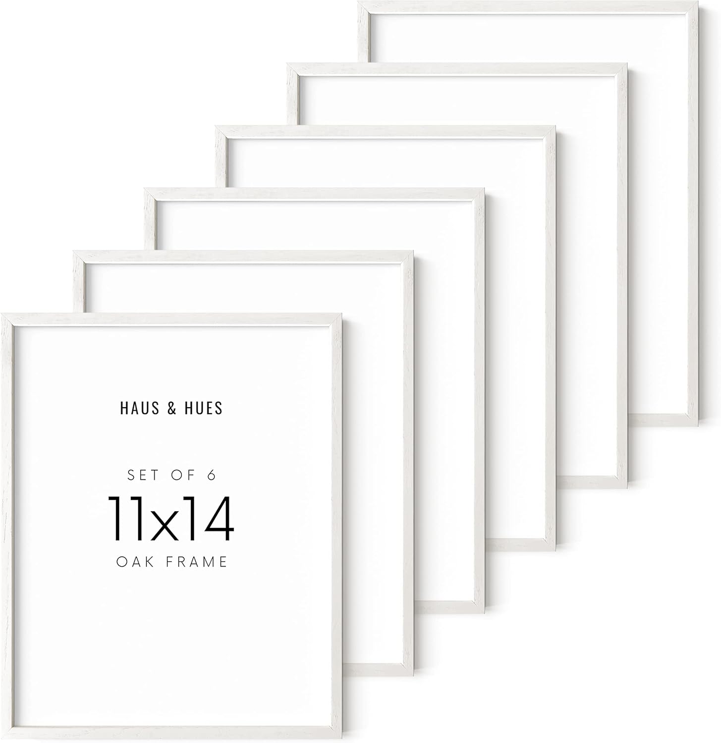 Haus and Hues White Oak 11x14 Picture Frame Set of 6 - Set of 6 11x14 Wood Picture Frame, 11x14 White Picture Frame, 14x11 Picture Frames, White Picture Frames 11x14, White Art Frame (White Oak Frame)