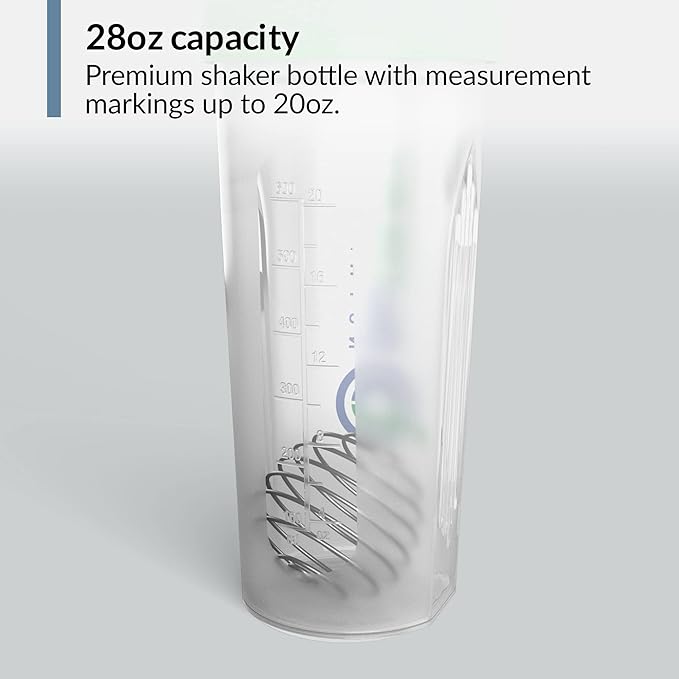 - 28 OZ BLENDER BOTTLE – BioTRUST premium 28oz shaker bottle with measurement markings up to 20oz