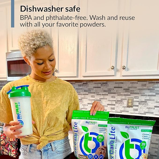 - DISHWASHER SAFE – BioTRUST blender bottles are BPA and phthalate-free; simply wash and reuse our drink shaker with all your favorite powders