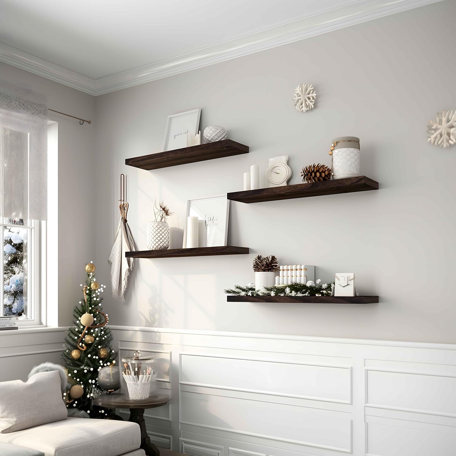 - A Gift for Family or Friends - The rustic wood floating shelves is not only a esthetic home decor but also a great gift for your family or friends.