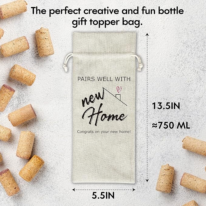 Zodvery Housewarming Wine Gift Bags - Gift for New Home, New Home Owner Gift, Realtor Gift to Clients - Reusable Burlap With Drawstring Gift Bag (5.5"x 13.5")-1 Pcs/jiu076