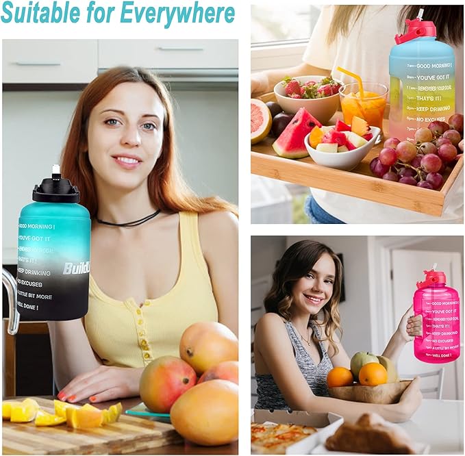 - 【Motivational Quote & Time Marker】QuiFit gallon/half gallon water bottle with motivational quote and time marker on it, the water jug is perfect to ensure you stay motivated and hydrated , drink enough water throughout the day. Motivational water bottle with straw widely use for fitness goal including cycling, camping, running, bodybuilding, travel, picnic, weight loss.