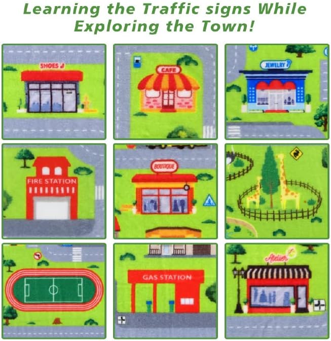 Kids Playmat Car Rug, Educational Car Rugs City Life Road Traffic Play Mat for Bedroom Play Room Game Area Non Slip Kids Foam Rug Playtime Activity Mat for Toddler Baby Boys and Girls 8 x 10
