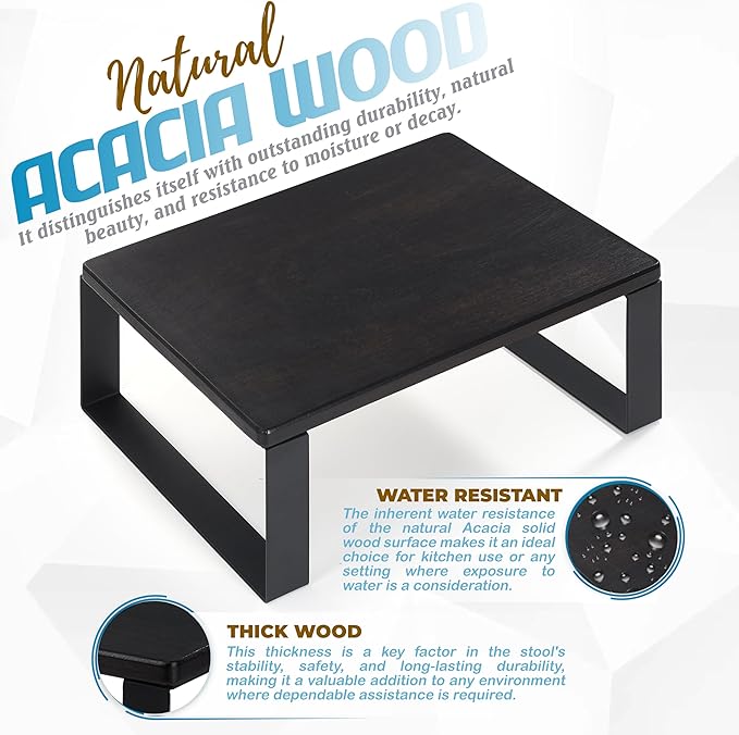 - ✔️ HIGH QUALITY & GOOD LOAD CAPACITY - Our wooden step stool for adults is durable and resistant. We have chosen heavy-duty material for long lasting durability. With thick natural wooden board and premium metal frame to hold up to 450lb.