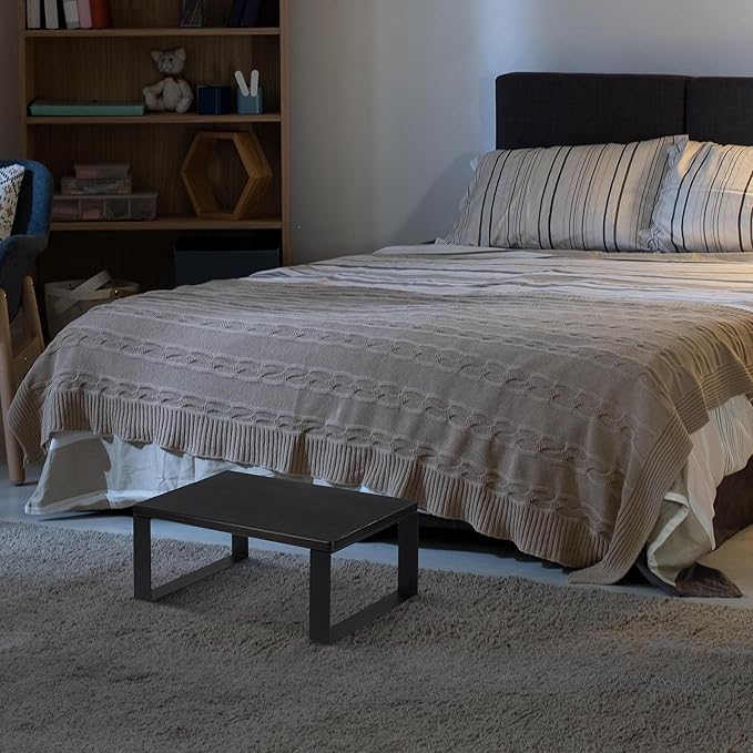 Wooden Step Stool - Heavy Duty One Step Stool - Holds up to 450Lb with Steel Frame for Kitchen/Bathroom/Bedside Step Stool (Walnut)