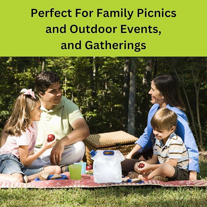 - Wide Range of Use. Whether you need a large water container for a family picnic, a collapsible water jug 2 gallon for your next hiking or camping trip, or a stackable water container for emergency preparedness, our plastic folding collapsible re-usable water pouch product has you covered.