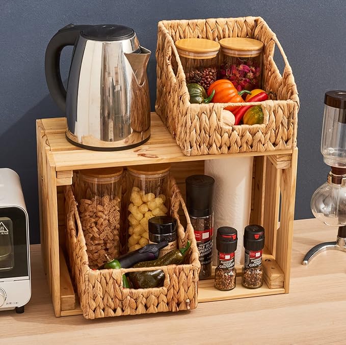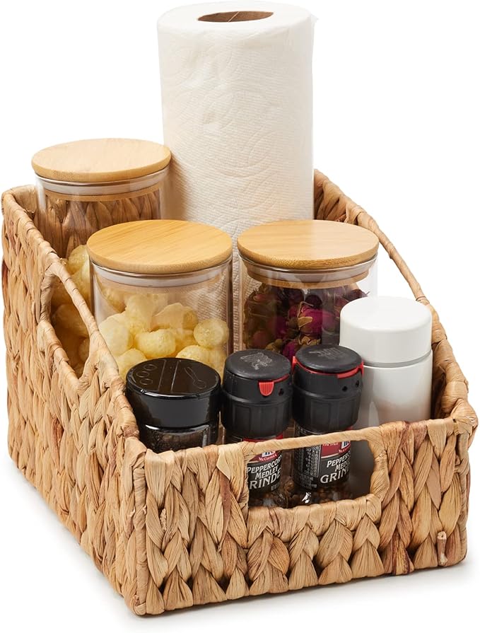 - HOME & KITCHEN ORGANIZING - Clear the clutter on your shelves, racks, inside cabinets, or pantry. These natural baskets add to your decor while offering storage for everyday personal items. Useful for food storage, go-to snacks, or everyday items.