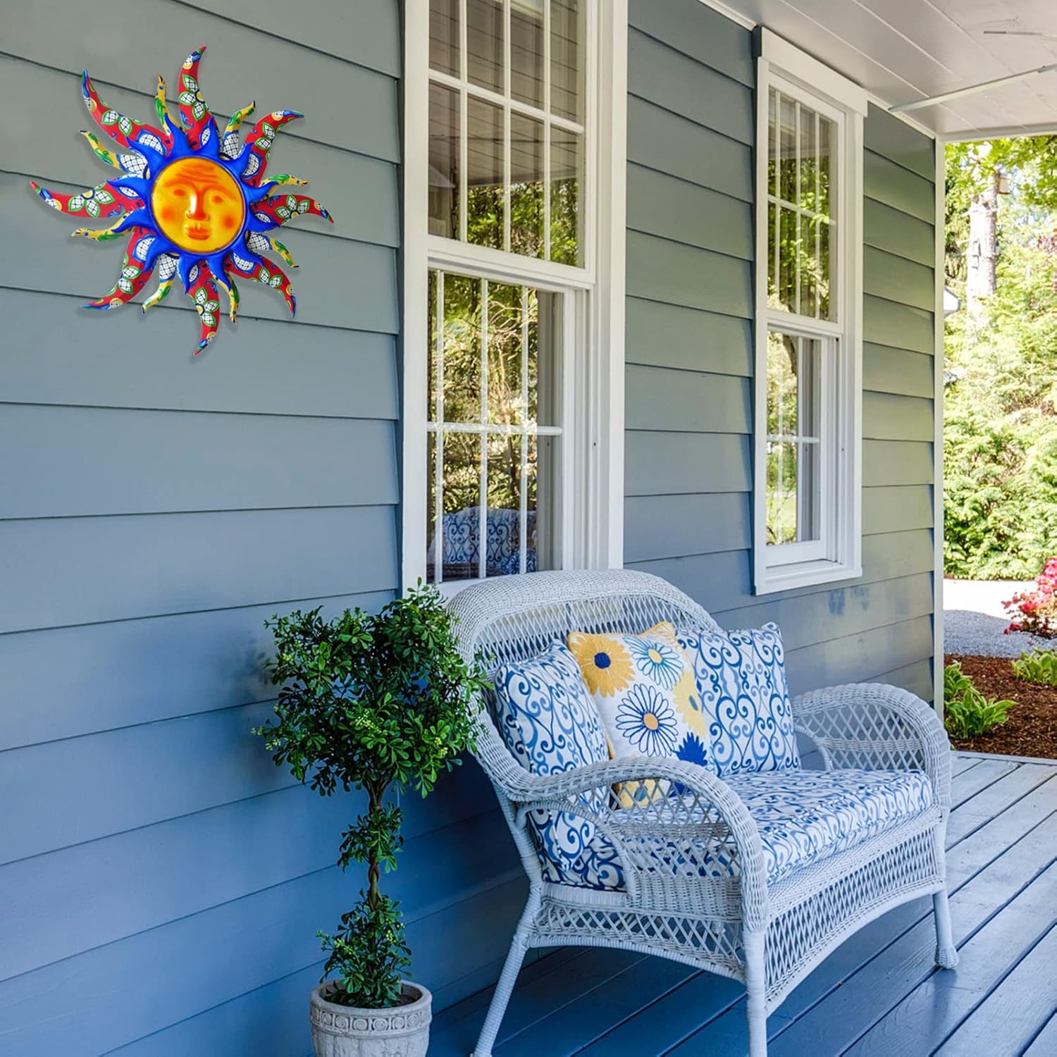 - 【 Metal Wall Art 】 : Mexican style Sun wall decor, using high-quality metal, hand painting spray paint, exquisite patterns and bright colors to bring vitality to your wall.