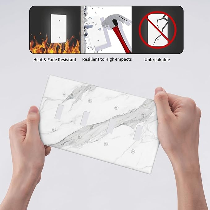 Marble Grey Wall Plate Decorative Light Switch Cover 4-Gang Quad Toggle Faceplate for Bathroom Farmhouse Kitchen Bedroom White