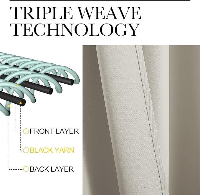 - ENERGY SMART: Triple weave blackout fabric balances room temperature by insulating against summer heat and winter chill. Protect your furniture, floors, and artwork from the ravages of the sun, the drapes will pay for themselves off over time.