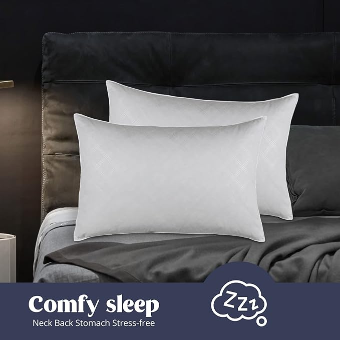 puredown® Soft Bed Pillows for Sleeping, Goose Feather Down Pillows Hotel Collection Standard Size of 2, Geometric Pattern Embossing Pillows for Back Stomach Side Sleepers (20 x 26, 2 Pack)