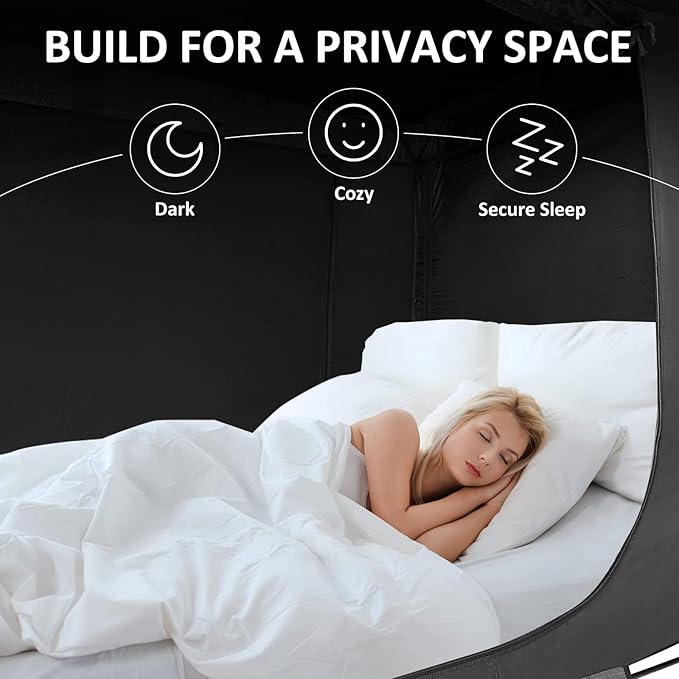 - RELAXING PRIVATE SPACE: This king bed tent measures 80 x78 x 47inches and fits double beds. It creates a private space in dorms, shared rooms, offices and more, which means you can have more relaxation time. The bed tent also provides you with a better night's sleep at bedtime and during naps. Bed tents allow you to see out, but no one can see in. You can adjust the panel as needed to control the light and create a cozy environment.