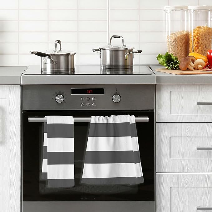 Classic Black and White Striped Bath Hand Towel Soft Cotton Highly Absorbent Fingertip Towels for Bathroom Beach Kitchen Sports Gym Yoga Travel (2-Pieces Towel Sets, 28x16 inch)
