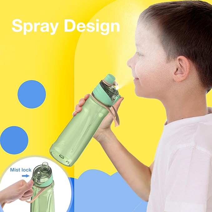 FEIJIAN Mist Water Bottle,22oz Sports Water Bottle with 2-IN-1 Mist & Sip Function, BPA-Free Plastic Water Bottles, Misting Water Bottle, Leakproof & Lightweight, Ideal for Fitness and Outdoor, Green
