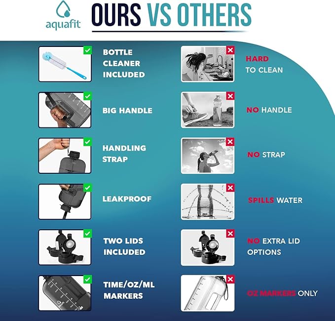 - Track How Much You Drink - Our BPA Free one gallon water bottles come with time markers on the side so you can see your daily water intake and stay on track meet your health and fitness goals.