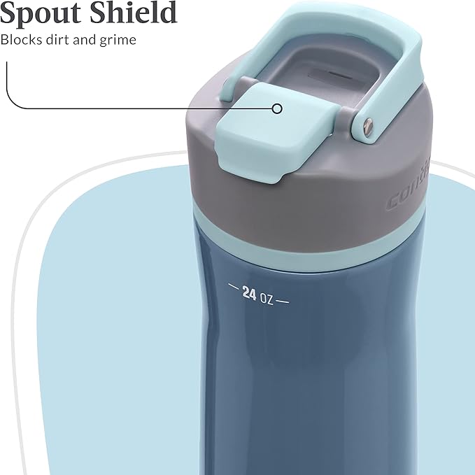 Contigo Clybourn Chill Stainless Steel FreeFlow Filter Water Bottle with AUTOSEAL, 24oz., Dark Ice