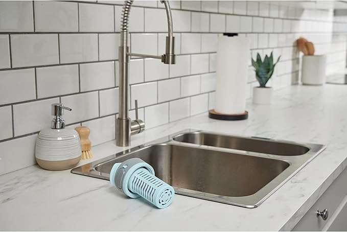 - Long-lasting filter lasts 4-6 months (80 gallons) and replaces the equivalent of 600 (16.9 fl. oz.) single-use water bottles