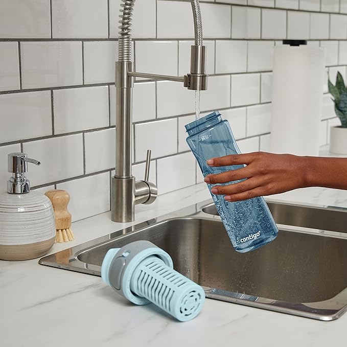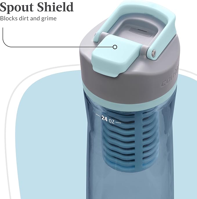 Contigo Clybourn Plastic FreeFlow Filter Water Bottle with AUTOSEAL spill-proof Lid 24oz., Dark Ice