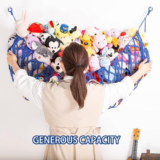 - 【Jumbo Large Capacity Plush Toy Hammock,Keep Room Tidy & Spacious】The large toy hammock for stuffed animals size: 60''*15'' inches,it can hangs conveniently in on the wall and holds tons of kids stuffed animals toys,and free up extra floor space to learn and play. The toy net hammock for stuffed animals is ideal for organizing your child's toys and keep kid’s room tidy and neat.