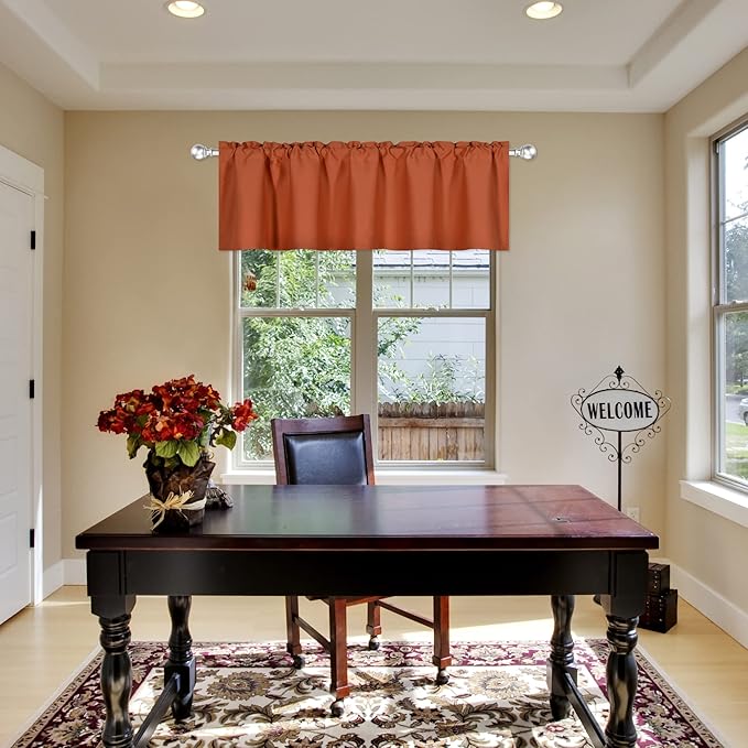 Burnt Orange Valance - Rust Valance for Windows 72x18 Inch Solid Blackout Rod Pocket Kitchen Short Curtain Toppers Valance for Bathroom Living Room, Terracotta