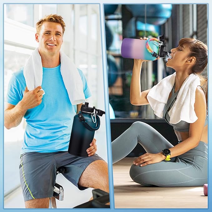 - SUPER DEAL COMBO - Buy one 64 oz insulated water bottle, get 9 accessories (2 x lids(BPA Free), 1 x paracord handle, 2 x straws(BPA Free), 1 x carrier bag, 1 x shoulder strap, 1 x protective silicone boot, 1 x straw brush)