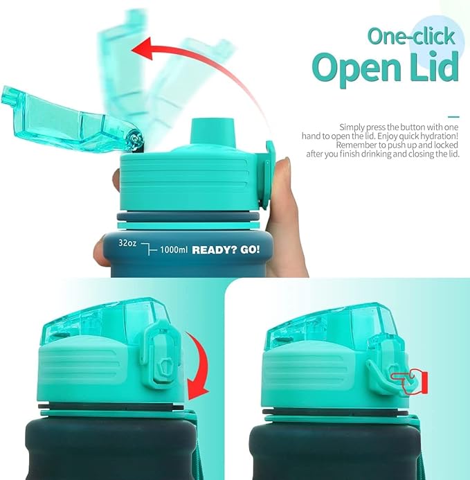 - ⚡【 BPA & TOXIN FREE Tritan Material - No ' Plastic ' smell】 : Crafted with quality food grade and reusable Tritan plastic, this 32 ounce 1000ml water bottle is 100% BPA&TOXIN FREE, odour free, and safer for you to use on a daily basis. It is a great choice for anyone to pursue a healthy lifestyle.