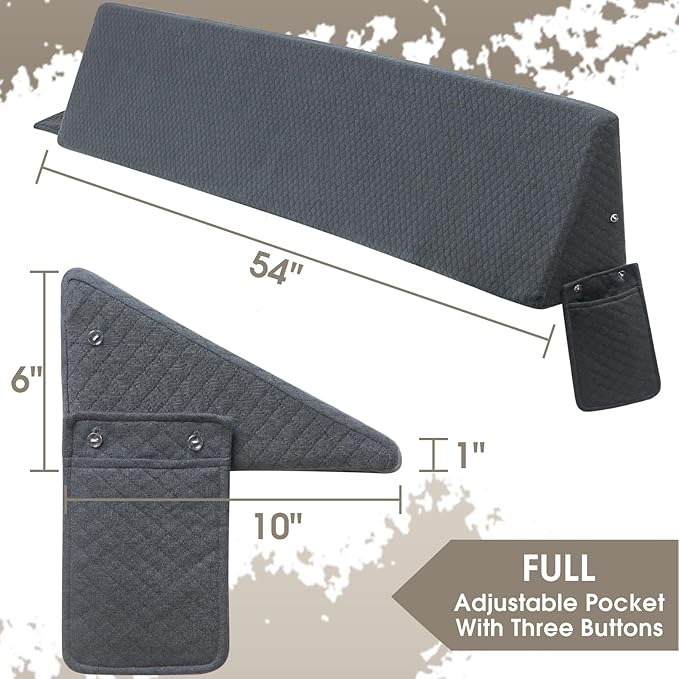 - EXQUISITE ACCESSORIES: RUJIPO full size bed wedge with exquisite details brings a more convenient and comfortable experience. The pillowcase made of high-quality breathable fabric ensures long-term use without sweating. Both sides of the mattress gap filler full designed with reinforced pockets could allow you to store your phone, remote control, glasses, or other items within reach.