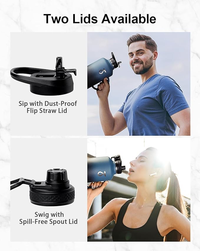 - No Spills, No Worries: Our stainless steel water bottle comes with a dust-proof flip straw lid and a spill-free spout lid, meeting your different needs. With accurate silicone seal rings, they are both 100% leak-proof and spill-proof.