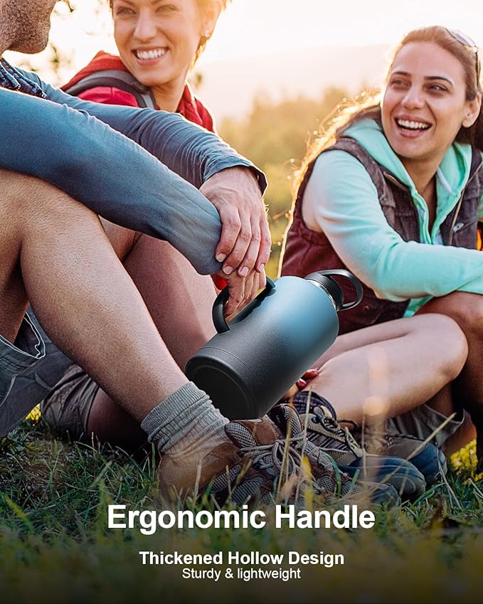 - A Handle You Can Rely On: Engineered with an integrated and ergonomic handle, Trebo 64 oz insulated water bottle is super sturdy and durable. The handle is thickened and hollowed for comfortable grip and easy lifting, so you can take it wherever you go.