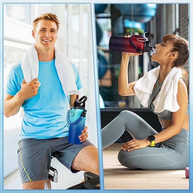 32oz/40oz/64oz Insulated Water Bottles - Vacuum Triple Walled Cold-48H Hot-24H, Water Bottle w/Straw & Chug Lid, Paracord Handle, Bottle Carrier, Stainless Steel Water Flask Mug for Sport Gym Yoga