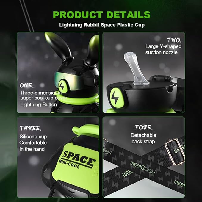 37 Oz Rabbit Water Bottle With Straw, Cool Lightning Space Rabbits Cup, Portable Outdoor Water Bottle, Suitable For Adults And Children Fitness Sports (Pink)