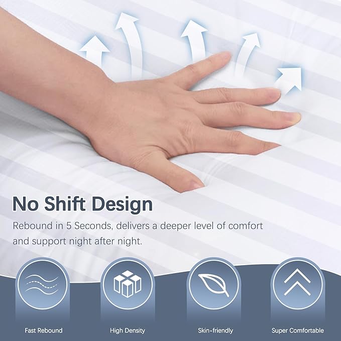 - Luxury at Home: The no-shift construction ensures that the pillows never go flat or slip from underneath; Compared with traditional synthetic fiber, the hollow fiber stuffed inside was crimped with three dimensional helical structured through conjugated spinning to provides a perfect bulkiness; All product materials are carefully selected and strictly inspected, buy with confidence! If you have any question or problem, just contact us and we'll be quick to help you!