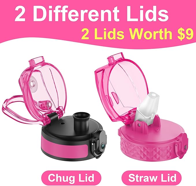 OLDLEY Kids Water Bottle for School with Straw Chug Lid, 15 oz Unbreakable Leak-Proof BPA-Free Motivational Water Bottles with Time Marker for Travel Sports Gym, 2 Lids,Rose-Red Green