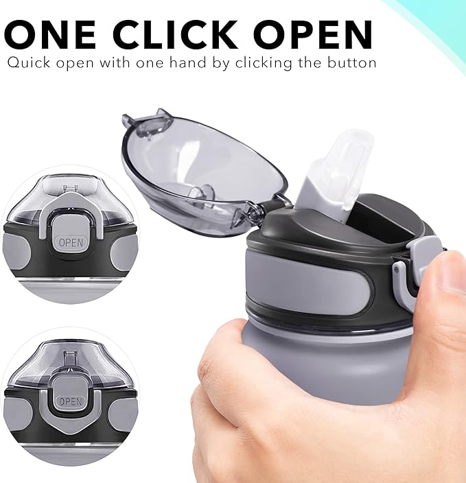 - 【Humanized Design】Open with one hand by clicking the button to access water. Highly suitable for boys and girls, and all ages. The flip-top lid is used a secure lock, making it dust-free and leak-proof. The frosted texture of the water bottle allows you to hold it better.
