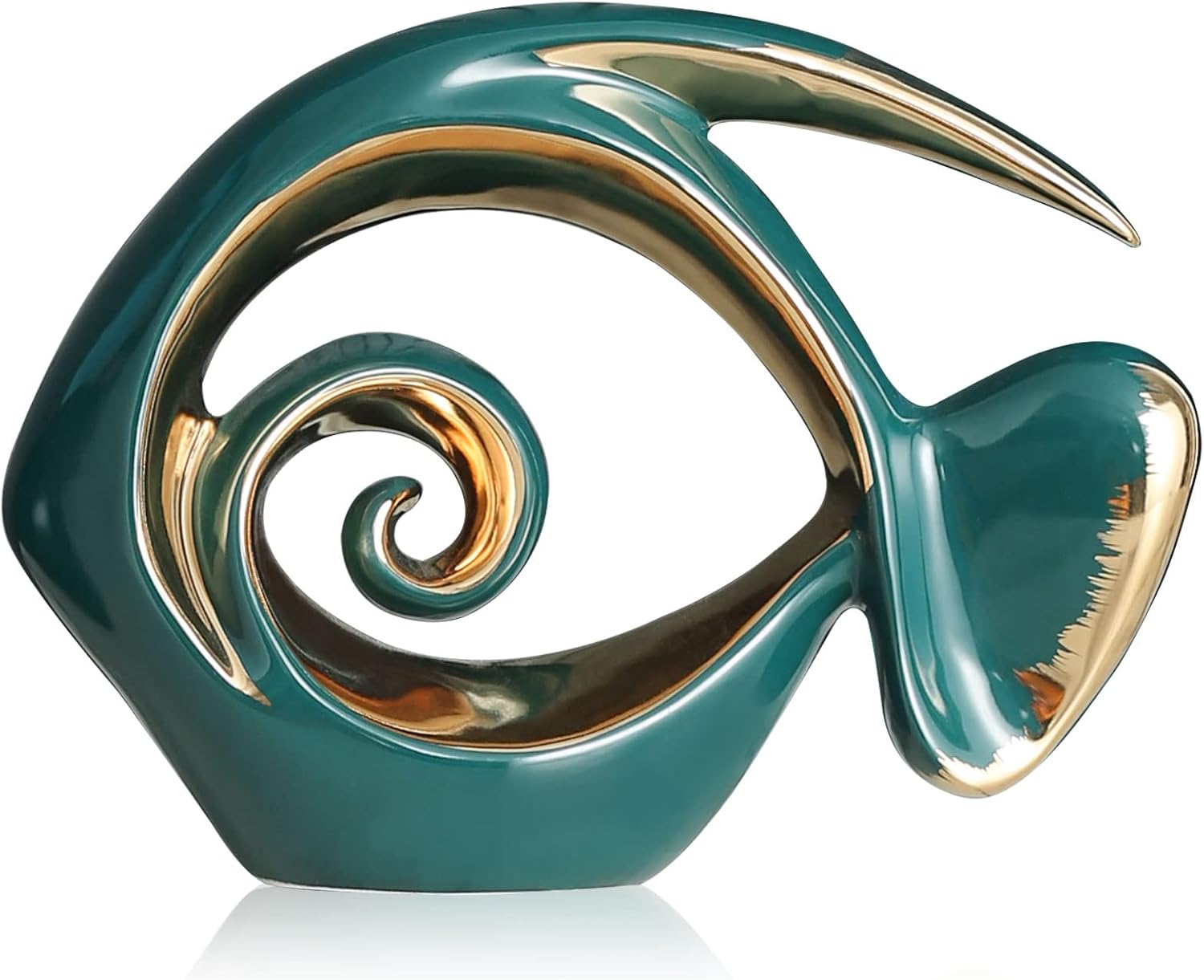 - High-Quality Ceramic Construction: Made with premium ceramic materials and expert craftsmanship, this green gold ceramic fish sculpture features an elegant lustrous finish, a smooth texture, and is easy to clean and maintain.