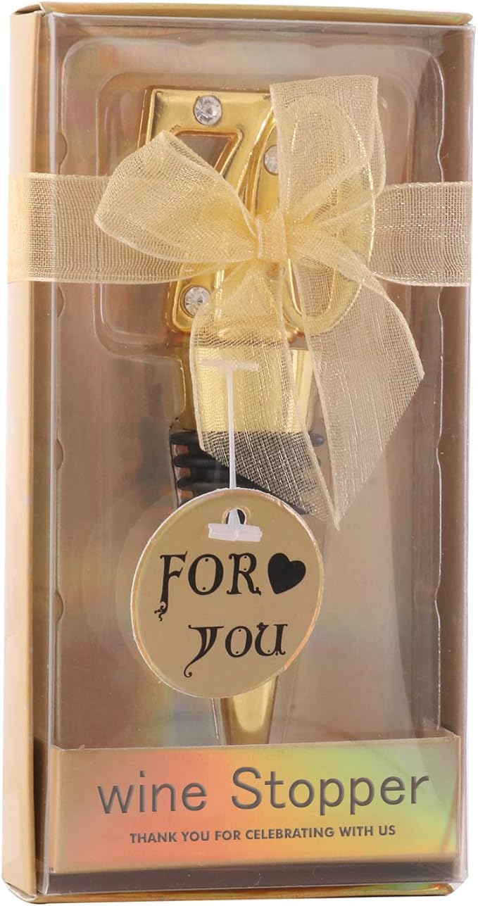 - Gold Themed- Our Golden 70 shaped wine stopper sets includes 24 Pcs. Each one has individual package in Gold, perfect for your gold themed birthday/Wedding party ceremony decorations