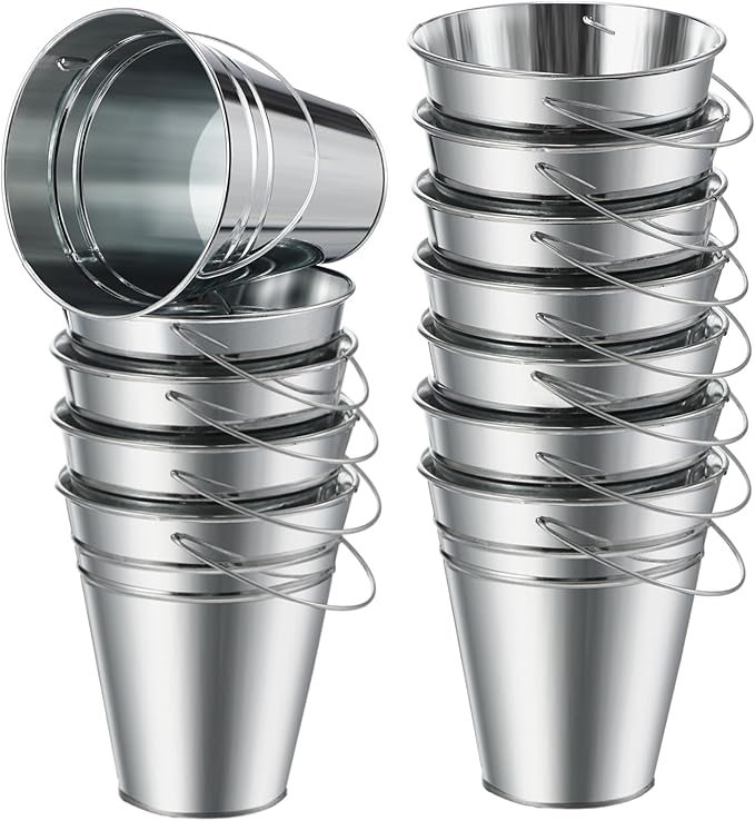 - What You Buy: the package comes with set of 12 pieces galvanized buckets with handles, plenty number to meet your daily use demand, and you can share with your fellows
