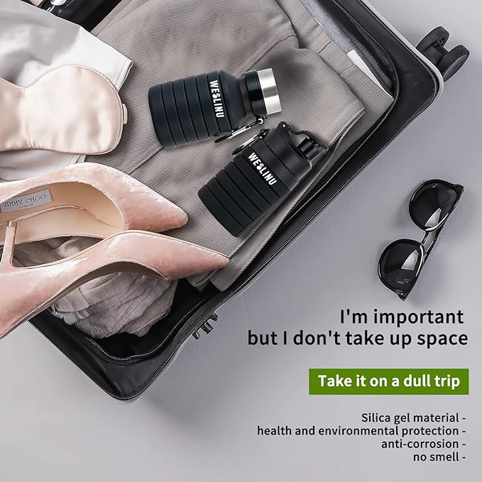 - 【PERFECT FOR TRAVEL & SPORTS】The shatter-proof, flexible and durable collapsible silicone water bottle equipped with a aluminium alloy carabiner, you can hook it to backpack or gym bag, carry it everywhere. Ideal for travel, gym, bikes, running, camping, fishing, hiking, climbing, yoga, beach, outdoor sports.-collapsible cup