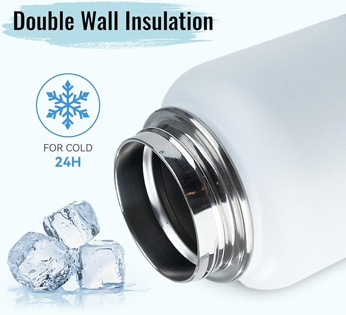 Stainless Steel Water bottle with Straw & Wide Mouth Lid, Wide Rotating Handle, 32oz Double Wall Vacuum Insulated Water Bottle Leak Proof, BPA Free, Keep Cold and Hot, 32oz, White Gradient