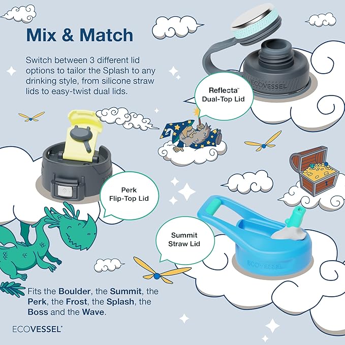 - SPLASH WATERBOTTLE: Our water bottles for kids are lightweight and super easy for kids to hold or carry. Our lid features our flip straw that allows drinking without having to tilt the bottle.