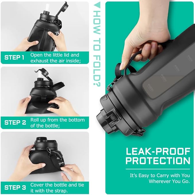 - Convenient Size: The 1.5L water bottle is compact and collapsible, making it easy to carry and store.
