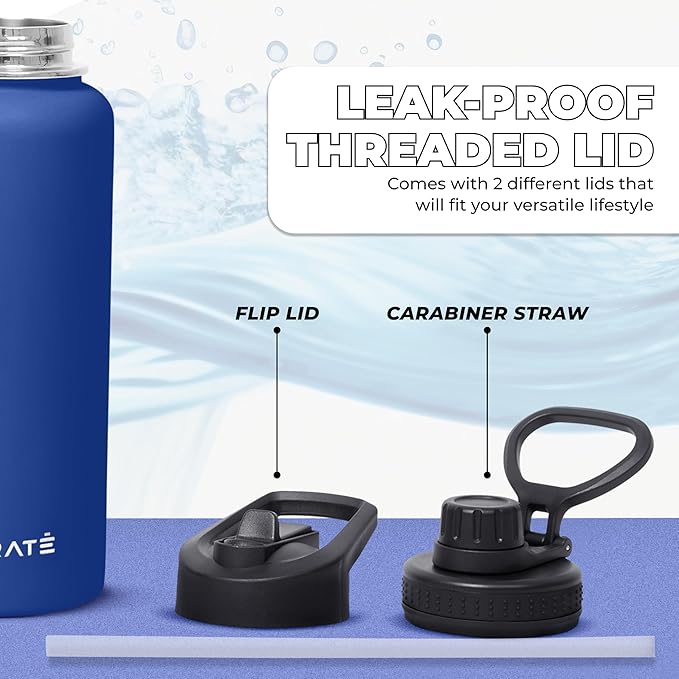 - VERSATILE TWO LIDS: Our 32 oz stainless steel water bottle comes with two convenient lids - a chug lid and a straw lid. Easily switch between them based on your preference, making it suitable for various activities and drink options