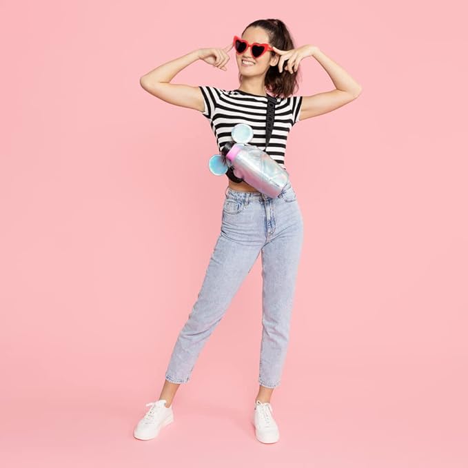 - STYLISH & COMFORTABLE – The slick, adjustable logo strap keeps the water bottle carrier secure. The Minnie Mickey Mouse Ears print of the water bottle pouch adds a pop of fun at the gym, on the field, or on a hike. Plus, it’s easy to hand wash clean!