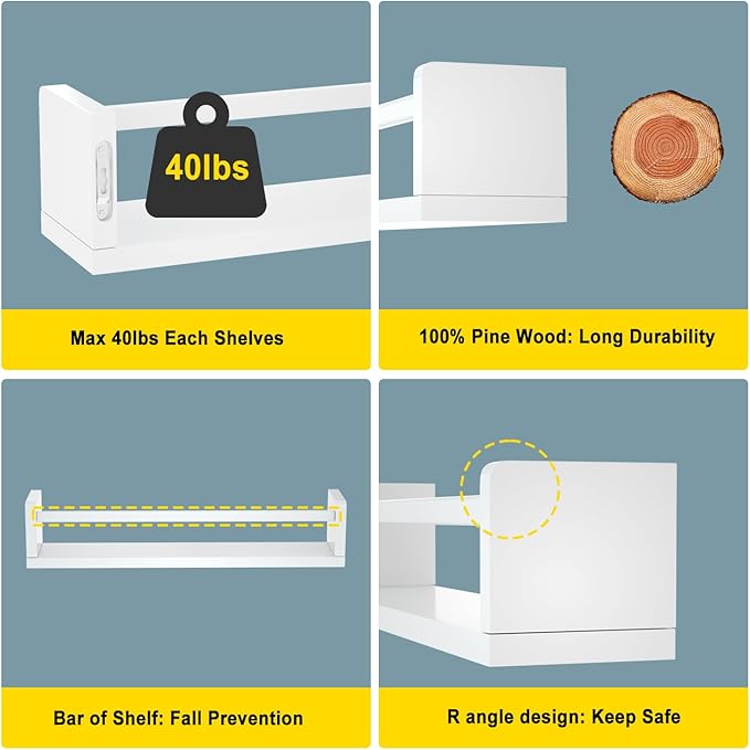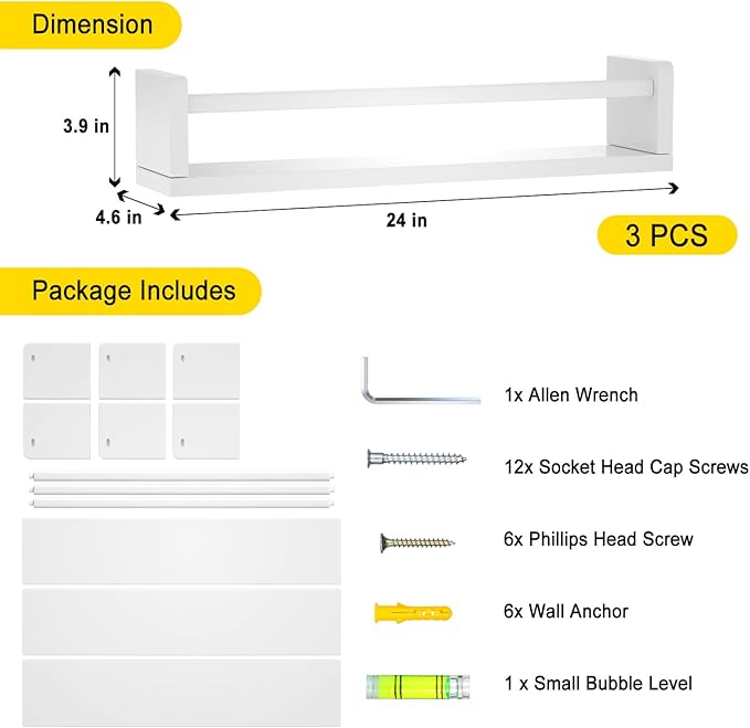 - Easy to Install: With the included hardware, these bookshelves for wall mounting can be easily installed by anyone, even those without handyman skills.