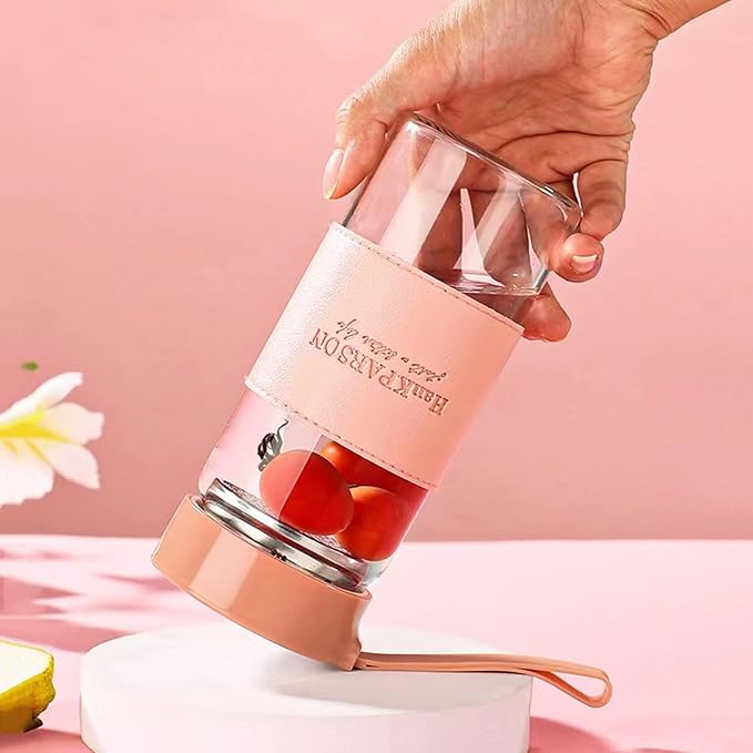 Glass Water Bottles 16 Oz Borosilicate water bottle-with sealing cap and Holsters and filters - BPA free,Men and Women Portable Glass Bottle (Pink)