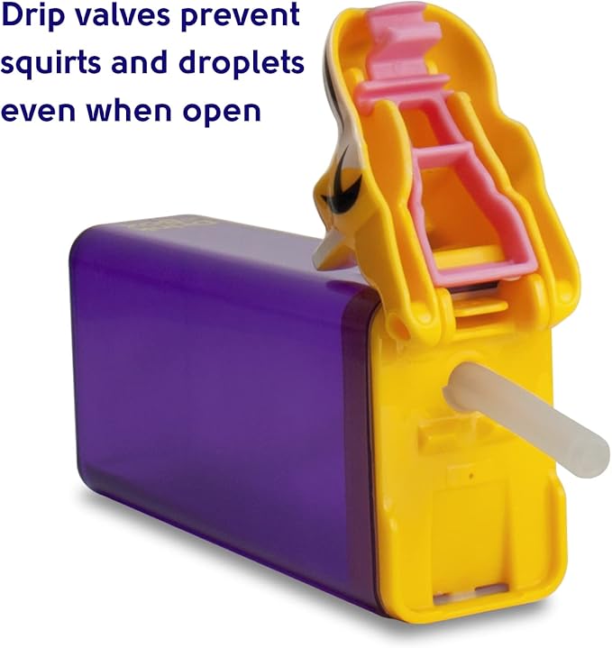 - New "heart-valve" in spout prevents drips when Drink in the Box is tipped over. Safer and better seal and locking lid prevents messy spills. Replaceable silicone straw and seal. Three year guarantee.