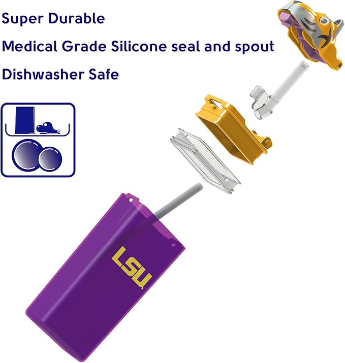Reusable Water Bottle | Officially Licensed NCAA Sports Bottle | BPA Free | Dishwasher Safe | Tiger Mike Mascot | 12 oz Drink in the Box - Lousiana State University