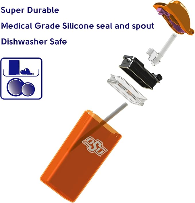 Reusable Water Bottle | Officially Licensed NCAA Sports Bottle | BPA Free | Dishwasher Safe | Pistol Pete Mascot | 12 oz Drink in the Box - Oklahoma State University