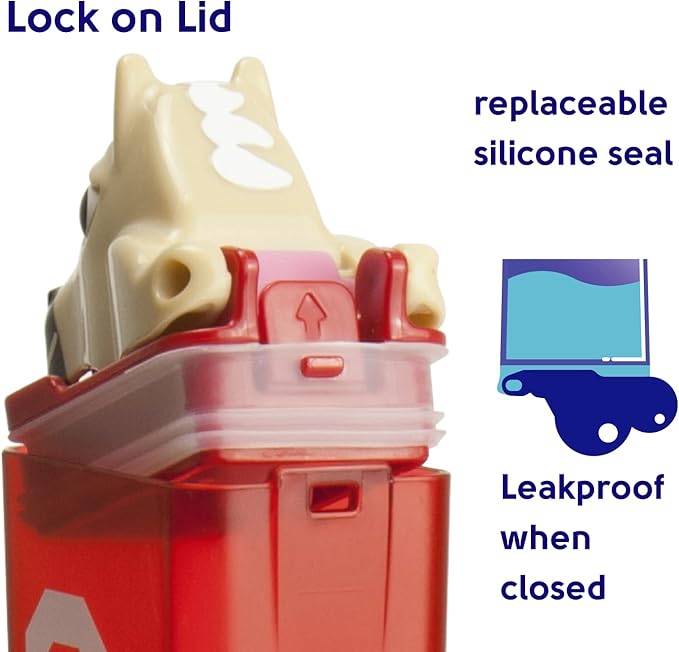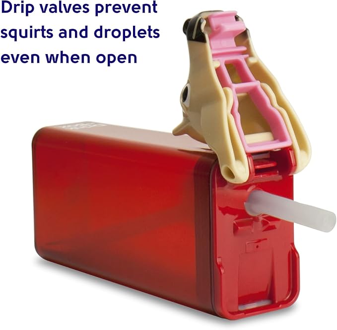 - New "heart-valve" in spout prevents drips when Drink in the Box is tipped over. Safer and better seal and locking lid prevents messy spills. Replaceable silicone straw and seal. Three year guarantee.